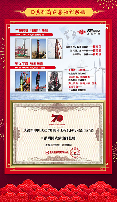 慶祝新中國(guó)成(chéng)立70周年傑出産品D系列筒式柴油打樁錘