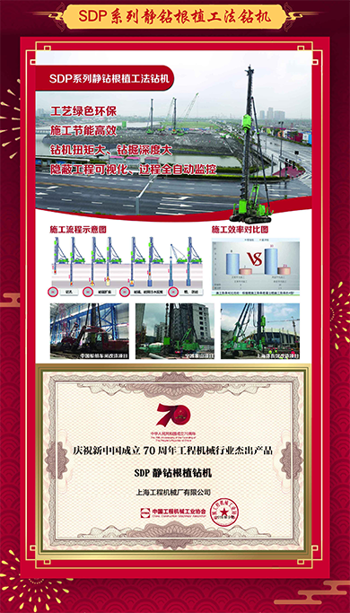 慶祝新中國(guó)成(chéng)立70周年傑出産品SDP靜鑽根植鑽機