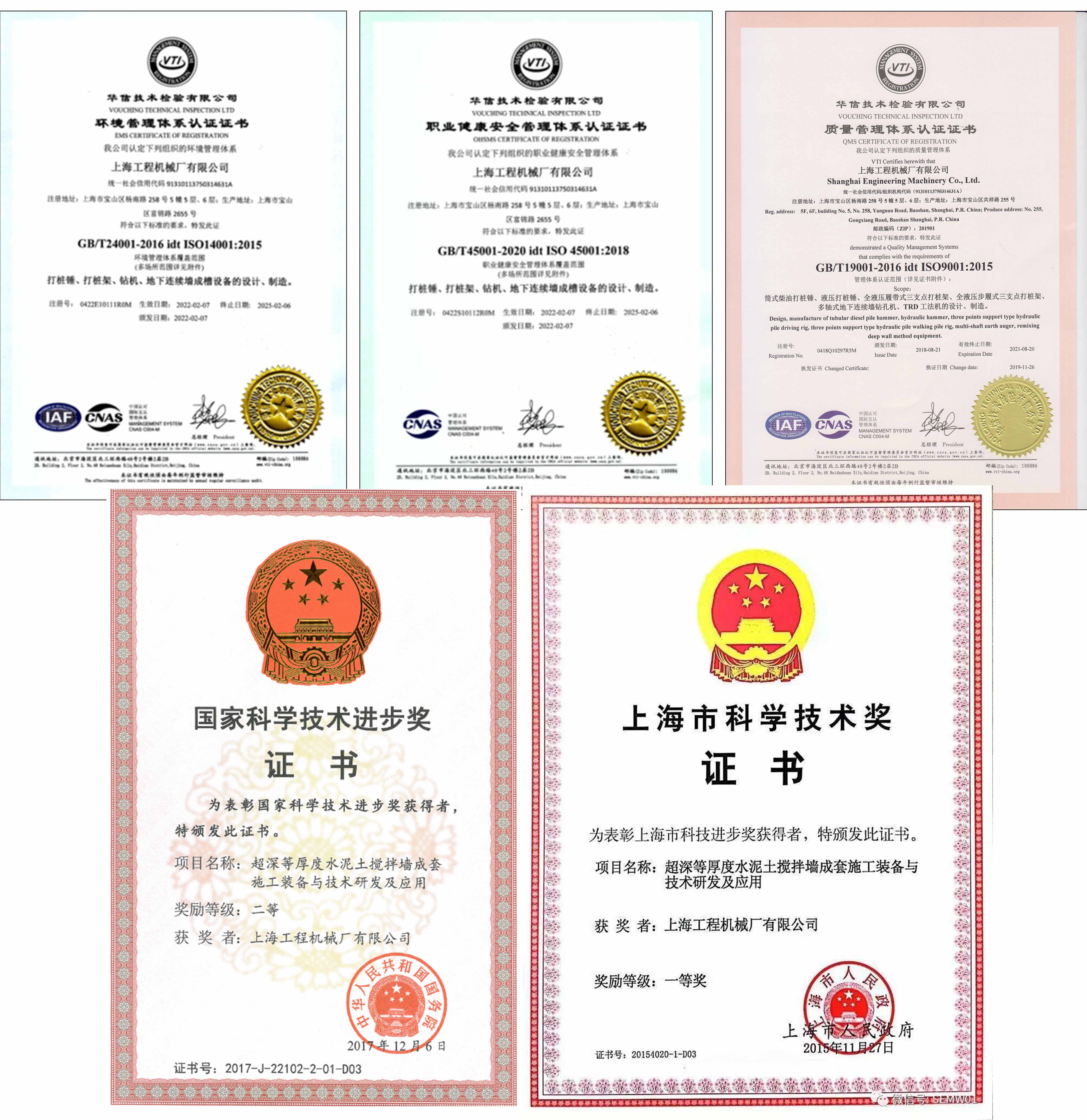 同時(shí),上工機械不斷打造自身核心競争力,協同多方優勢資源,在先進(jìn)制造、精益求精、質量管控、産品開(kāi)發(fā)、匹配優化、服務支持等領域夯實基礎,這(zhè)種(zhǒng)種(zhǒng)力量促使上工機械在各個領域取得了許多可喜的成(chéng)績:榮獲質量管理體系認證證書、獲得職業健康安全管理、環境管理體系認證雙證書;2020年榮獲上海市和諧勞動關系達标企業榮譽稱号、榮獲高新技術企業榮譽稱号、2021年榮獲第二屆茅以升岩土工程技術(集體)創新獎。公司的産品也屢獲殊榮:多個産品榮獲高新成(chéng)果轉化證書、TRD工法機榮獲國(guó)家科技進(jìn)步二等獎,以TRD工法機爲首的一系列樁工機械産品榮獲新中國(guó)成(chéng)立70周年工程機械行業接觸産品獎項。
