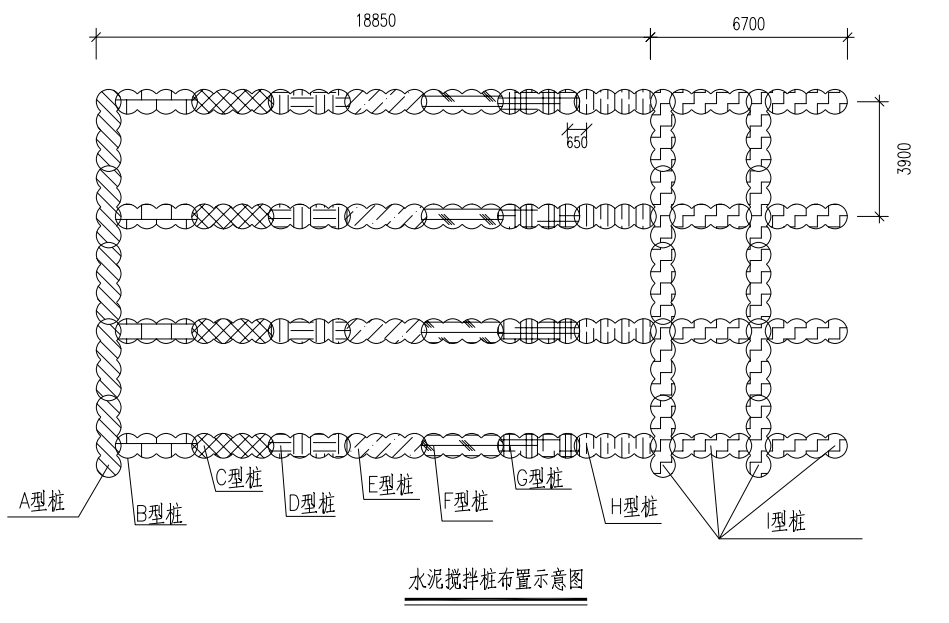 ▲四軸水泥攪拌樁斷面(miàn)示意圖