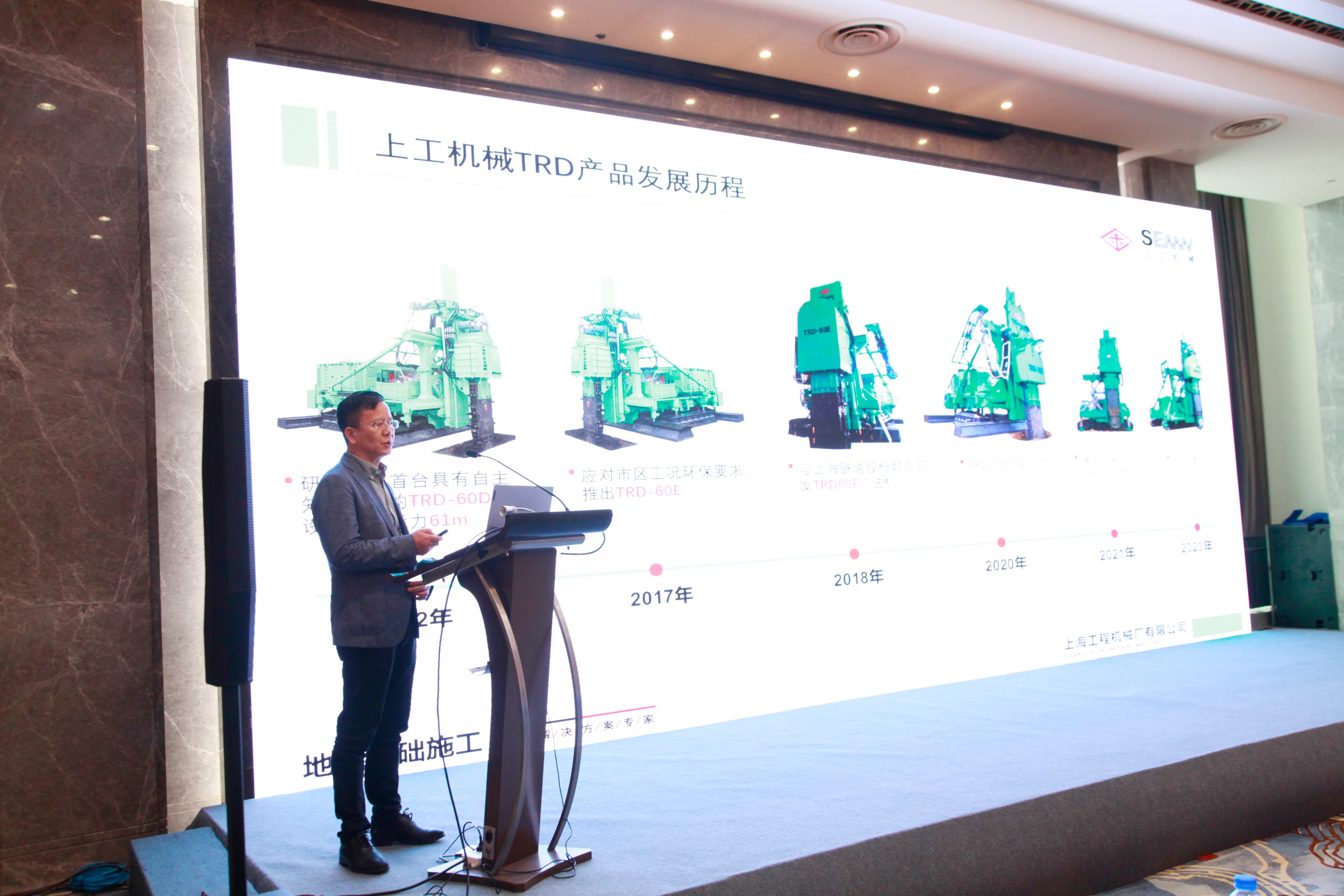 作爲匠心傳承,百年企業,大會(huì)特邀嘉賓--上海波沣工程機械有限公司有限公司總經(jīng)理龔秀剛出席會(huì)議開(kāi)幕式,現場以《TRD工法設備的研發(fā)和應用》項目榮獲茅以升岩土工程技術創新獎-團隊獎,并受邀在茅以升獎論壇上以“等厚度水泥土攪拌牆施工設備研發(fā)和應用”爲題,圍繞“等厚水泥土攪拌牆工法介紹、CSM、TRD設備技術創新、TRD典型應用案例”等技術專題做會(huì)議報告。