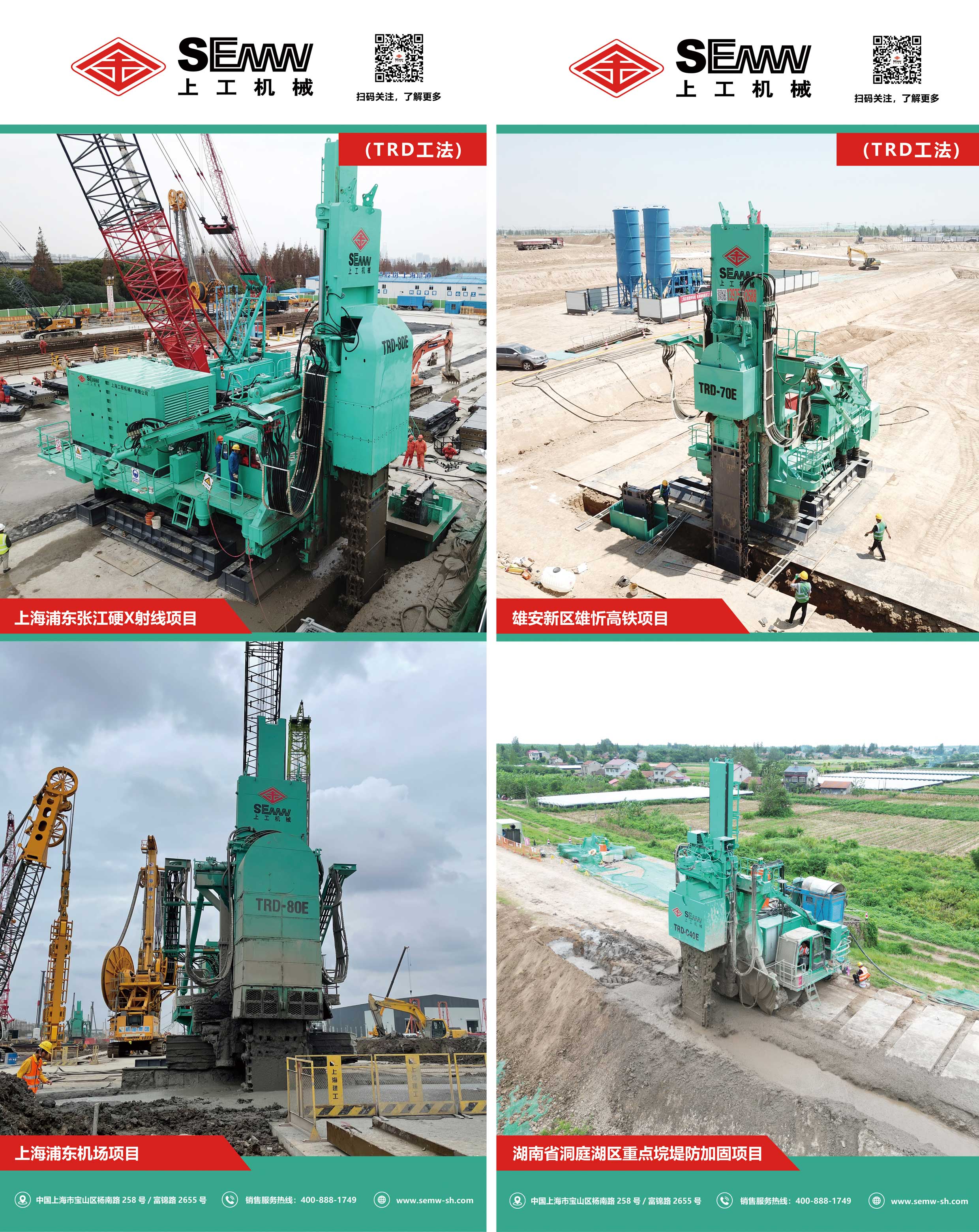 最後(hòu),報告通過(guò)對(duì)TRD工法優點、超深TRD新技術,列舉了全國(guó)各地多個典型施工案例的優異表現,深入分析上工機械TRD工法機設備的主要技術特點、新技術、新智能(néng)控制技術,如何确保成(chéng)牆質量,并全面(miàn)介紹了TRD工法設備在等厚度水泥攪拌牆施工領域的核心優勢。其次,報告對(duì)TRD工法應用拓展——TAD工法、優勢、案例以及TRD工法最新應用超深型鋼組合圍護牆(試驗)作進(jìn)一步概述。