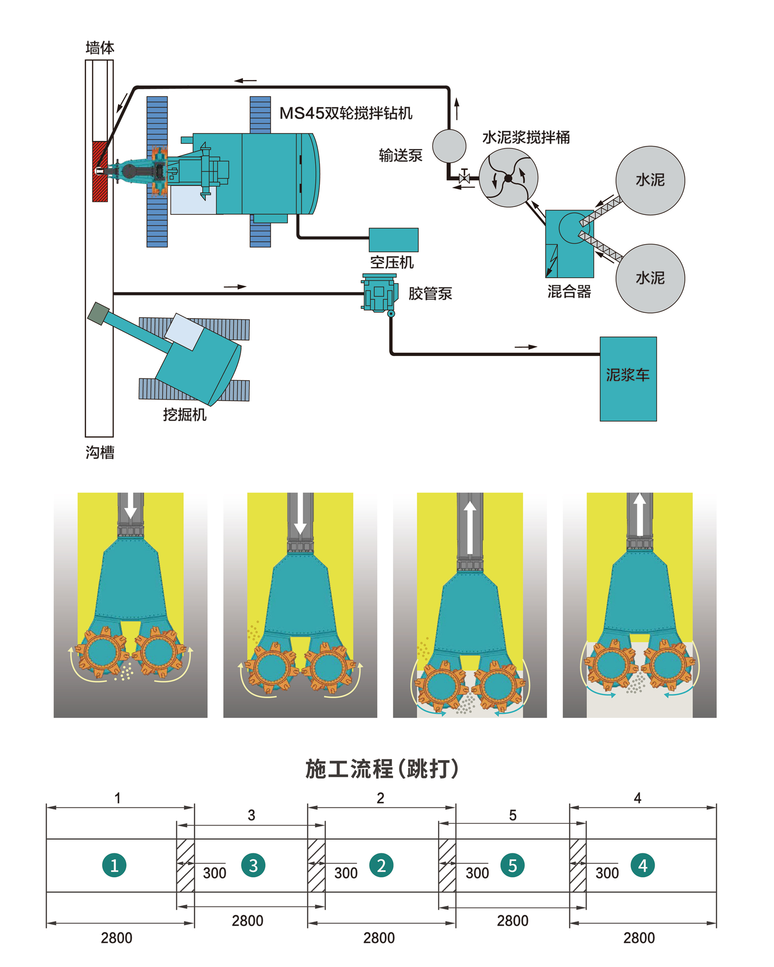 MS系列雙輪攪拌鑽機是CSM工法專用設備,适用于建築物基坑、地下停車場、地鐵車站、地下商業街、水庫大壩、環保工程等深基礎項目中的止水帷幕、擋土牆等工程施工。