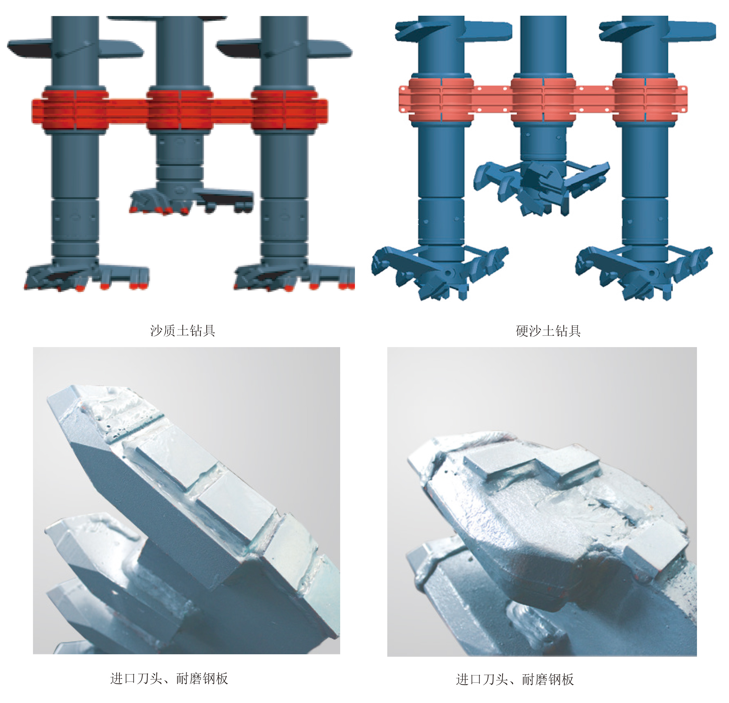 4、多種(zhǒng)鑽具可供選擇,能(néng)滿足各種(zhǒng)地層的施工要求