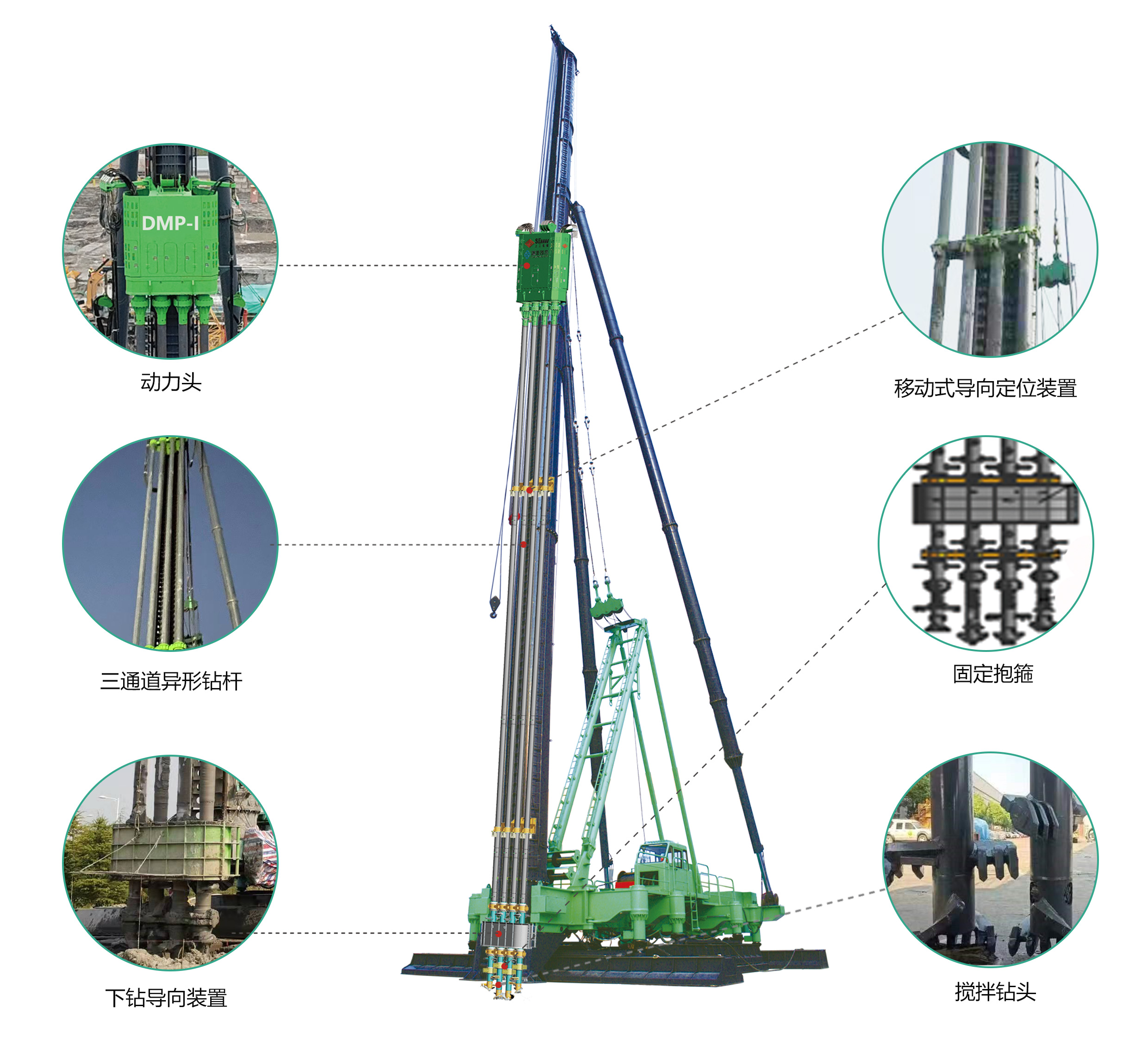 DMP-I數字化微擾動攪拌樁鑽孔機采用數字化施工控制系統,通過(guò)控制攪拌葉片旋轉,以及四根鑽杆同時(shí)噴射漿液、氣體實現自動化成(chéng)樁施工。設備通過(guò)地内壓力自動控制,以及異形鑽杆旋轉時(shí)外側形成(chéng)的排壓力通道(dào)實現微擾動施工,解決了傳統攪拌樁施工過(guò)程中樁身強度不均勻、信息化水平低、施工質量難以管控、置換土體較多、施工擾大、成(chéng)樁效率低等問題。