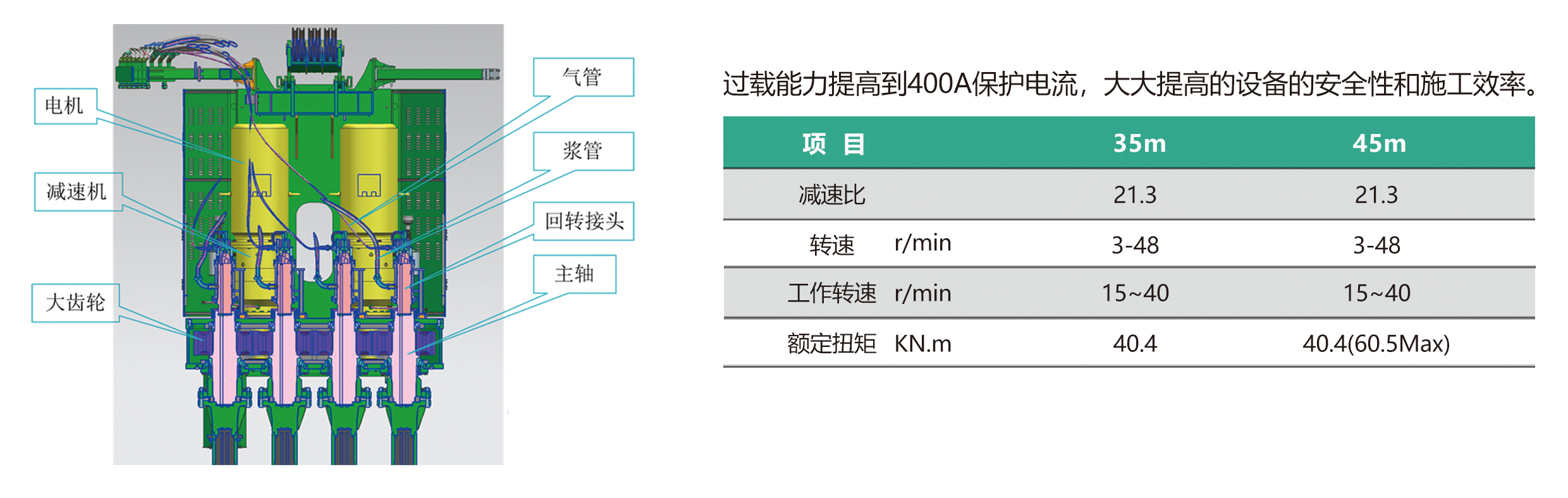●成(chéng)樁深度45m,施工轉速15~40r/min,扭矩40KN;