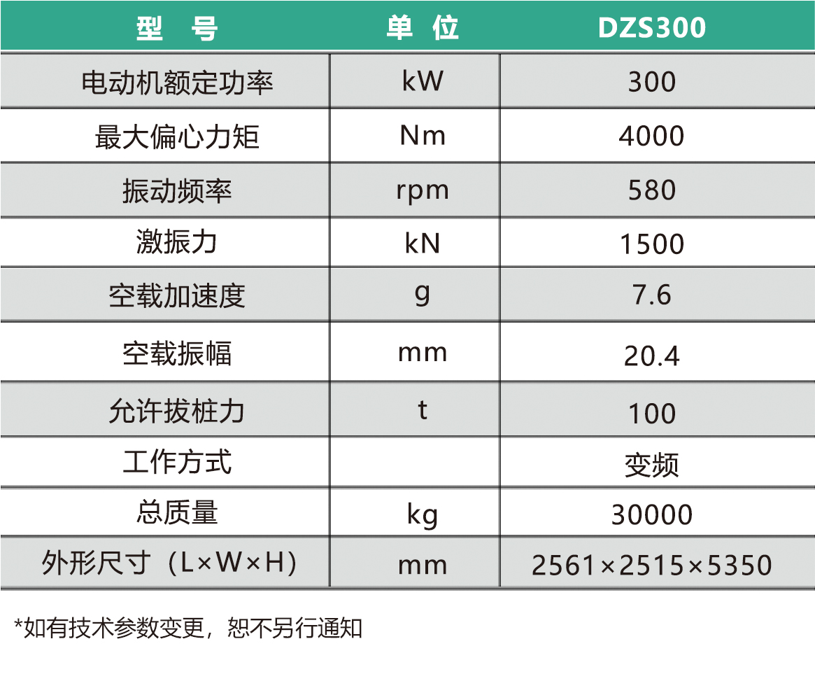 DZS300變頻電驅振動樁錘産品參數