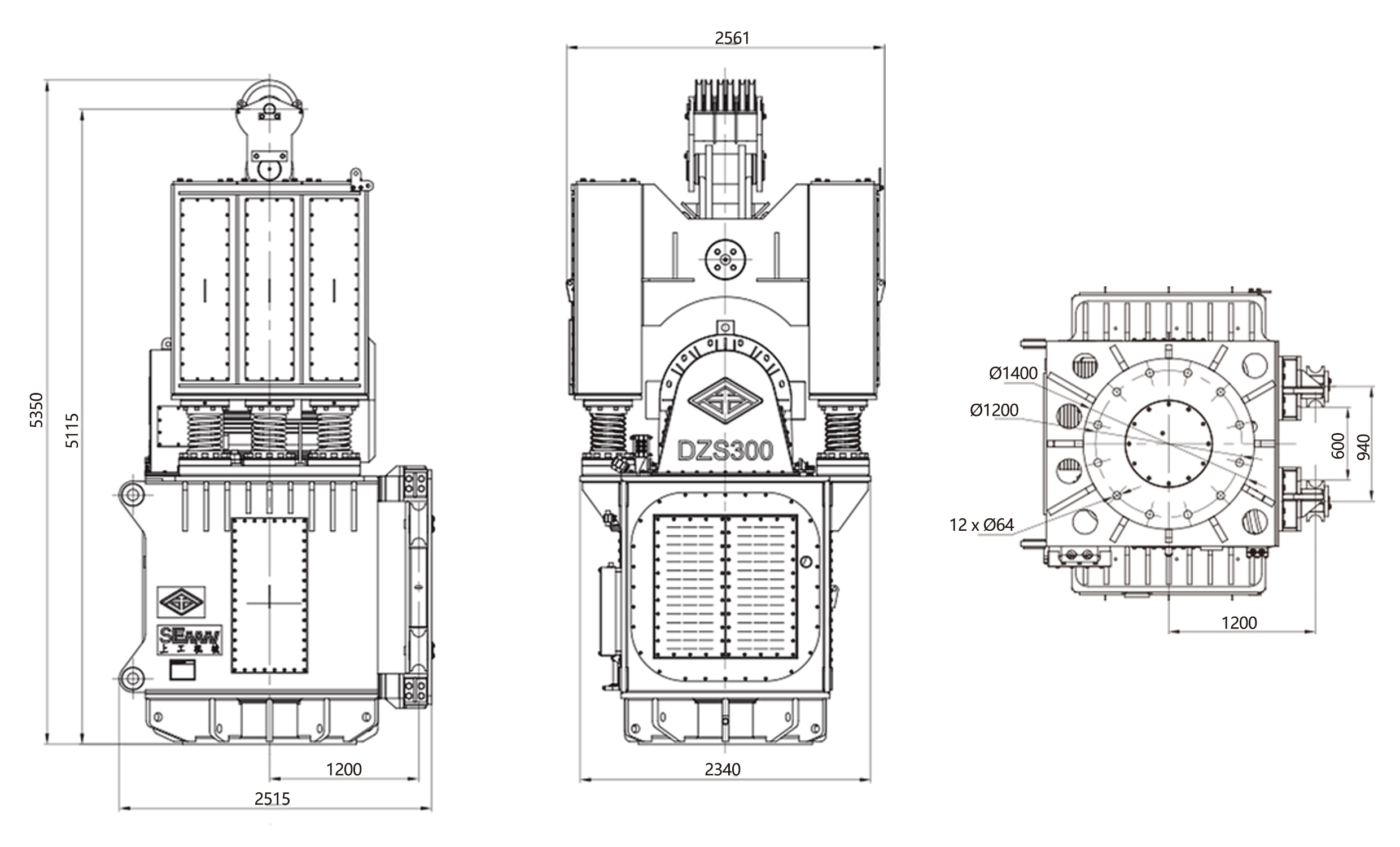 DZS300變頻型電驅振動錘外形尺寸圖